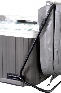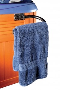 This Hot Tub towel bar is one of those deceptively simple products that makes all the difference in spa convenience. It holds towels a short distance away from splashing water and steam and conveniently folds flat against the spa side when not in use.