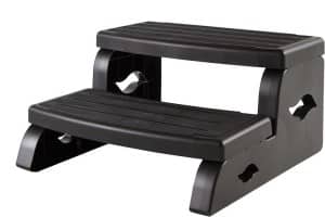 The innovative SmartDeck patio system provides a perfect solution to the problem of establishing a flat and level spa surface. Each panel locks together allowing the creation of small or large decks if desired. Textured surface and black color add to the deck’s elegant appeal. The SmartDeck should be offered with every hot tub sale. Don’t give away your profits to the concrete guy!